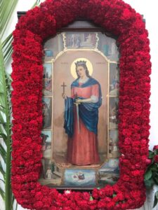 Και το μαρτύριο της Αγίας- που το βρίσκομε ιστορημένο λεπτομερώς στην αγία της εικόνα στον ιστορικό ναό της, στην πόλη μας- από την στιγμή αυτήν λαμβάνει βάθος και έκταση. Την βλέπουμε εκεί να της καταξέουν φρικτά τις σάρκες με σιδερένια νύχια, να της κατακαίουν τις πλευρές με αναμμένες λαμπάδες, να την διαπομπεύουν γυμνή στους δρόμους της πόλεως και, τέλος, να σφάζεται από το χέρι του ίδιου του πατέρα της. Και γίνεται έτσι η Αγία για μας και τη ζωή μας ολόφωτο υπόδειγμα προς μίμηση και παραδειγματισμό. Ένας οδοδείκτης στο δρόμο του καθήκοντος και της αυταπάρνησής μας για τον Χριστό. Σύμφωνα με το απόστιχο του εσπερινού της Αγίας: «ούτε βασάνων το πύρ, ούτε τρυφής η απόγνωσις, ούτε του κόσμου χάριτες, ούτε άνθος νεότητος της προς Χριστόν αγάπης εχώρησεν…».